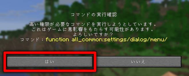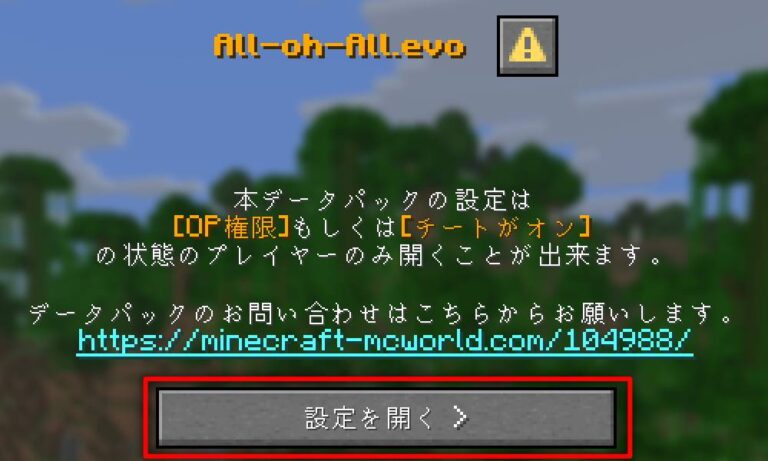 ※op権限を持つプレイヤー(シングルであればチートがオンの状態)のみ設定を開くことができます。