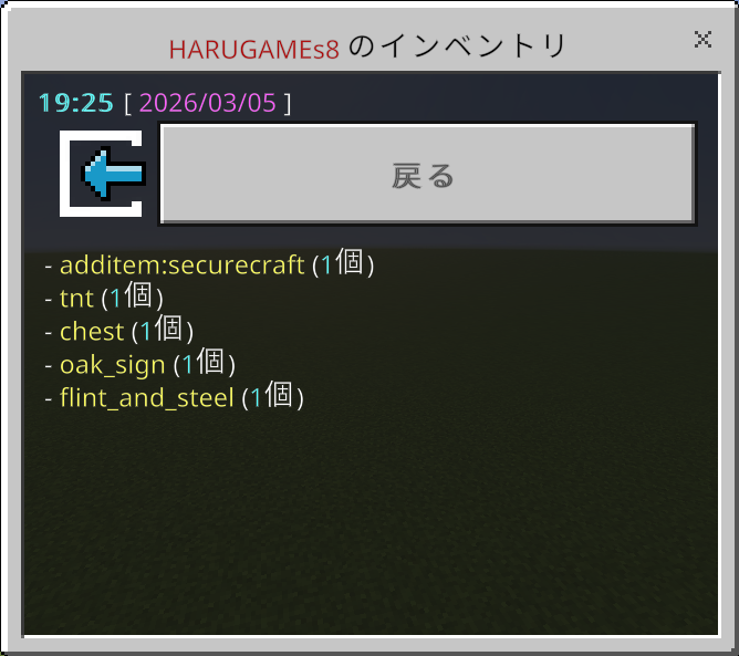 設置したプレイヤー & ブロックID & 時間 が確認できます