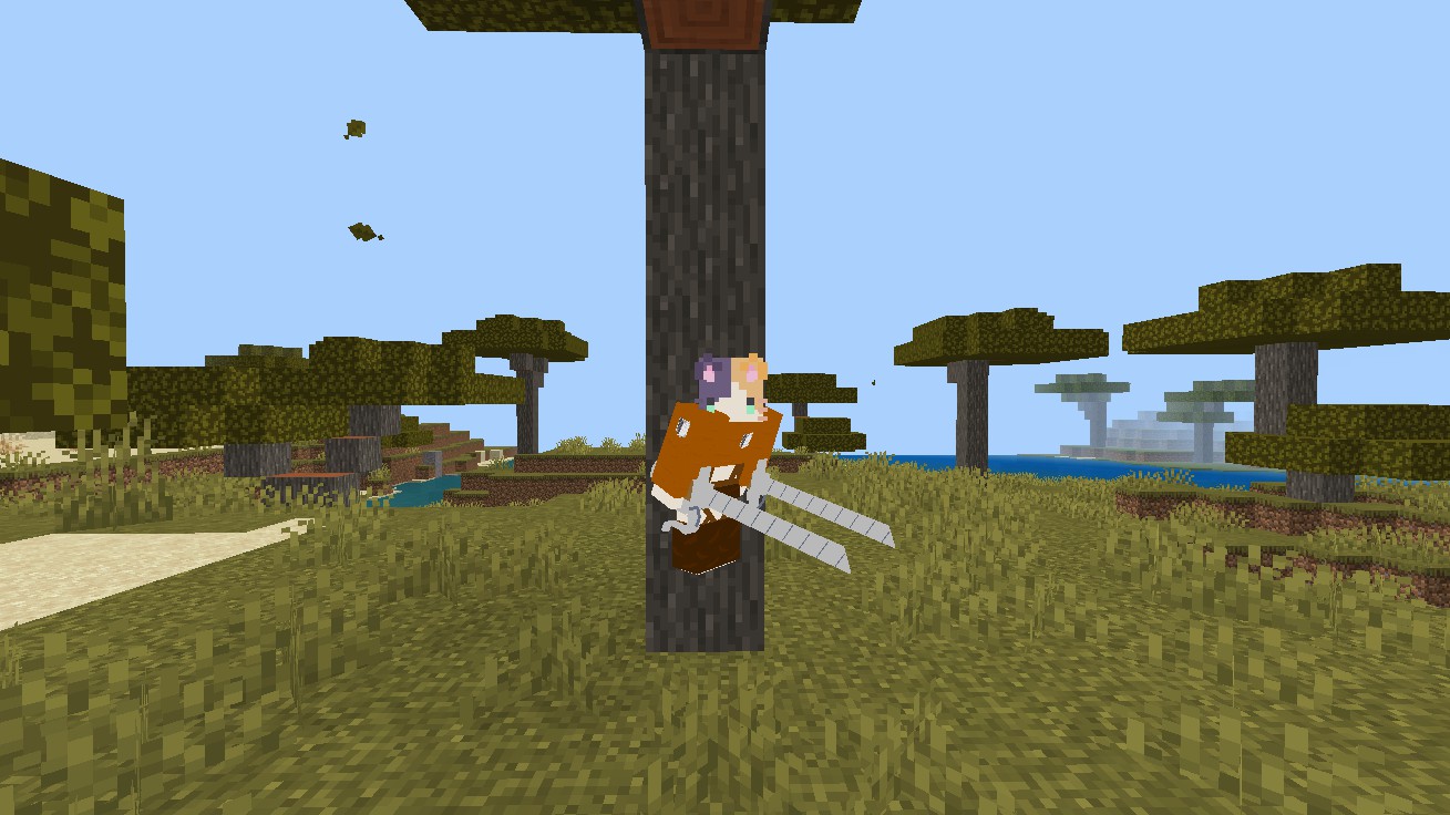 ・今回の立体起動装置は視線の先にブロックがないと動かない(エンティティや何もないところ(地面は使える)では使えない)のでミッション3は建築物が多いまたは森でやることを推奨します