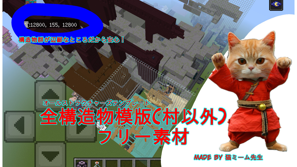 皆さん、サバイバルマップを作りたいと思って、マイクラのストラクチャーを入れたくても、フラットなのでオーバーワールドのストラクチャーが入れなくて困ったことがあるのですか?俺はあります。ではそんなことでお悩みのそこのあなた🫵 全構造物テンプレートです♪座標がx 12800、z 12800という辺鄙なところにあるので、とても大きなマップでない限り影響されません!
