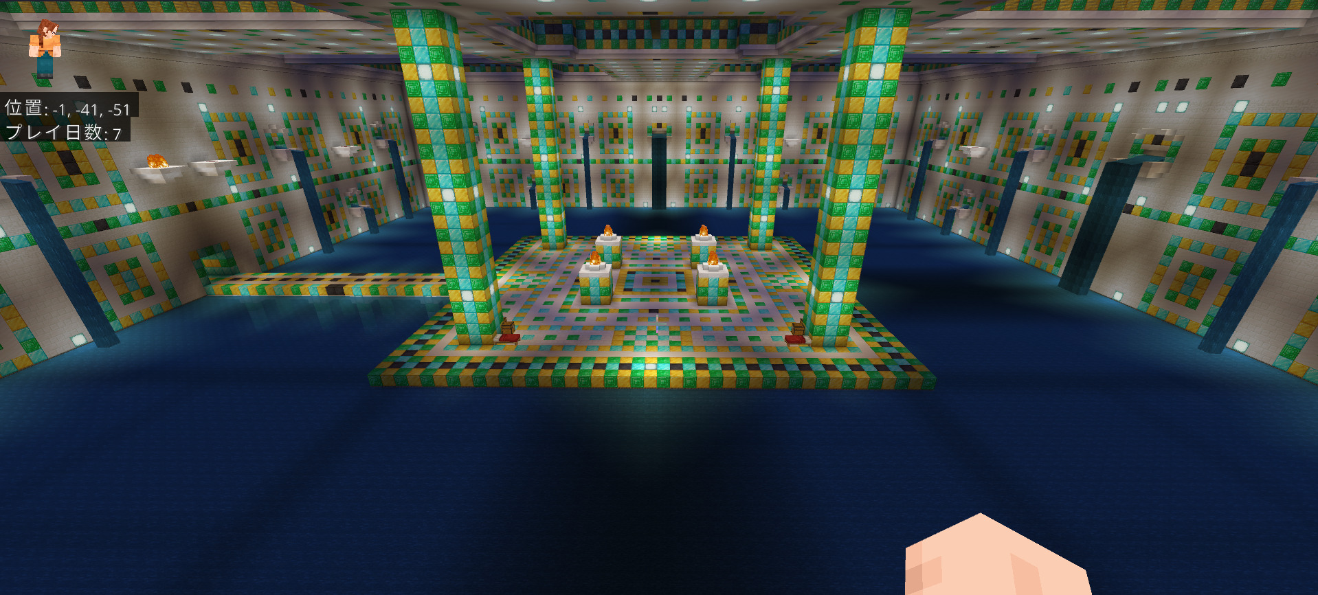 中を薄暗くする為に照明を減らし、敵モブの湧きつぶしをしていません。