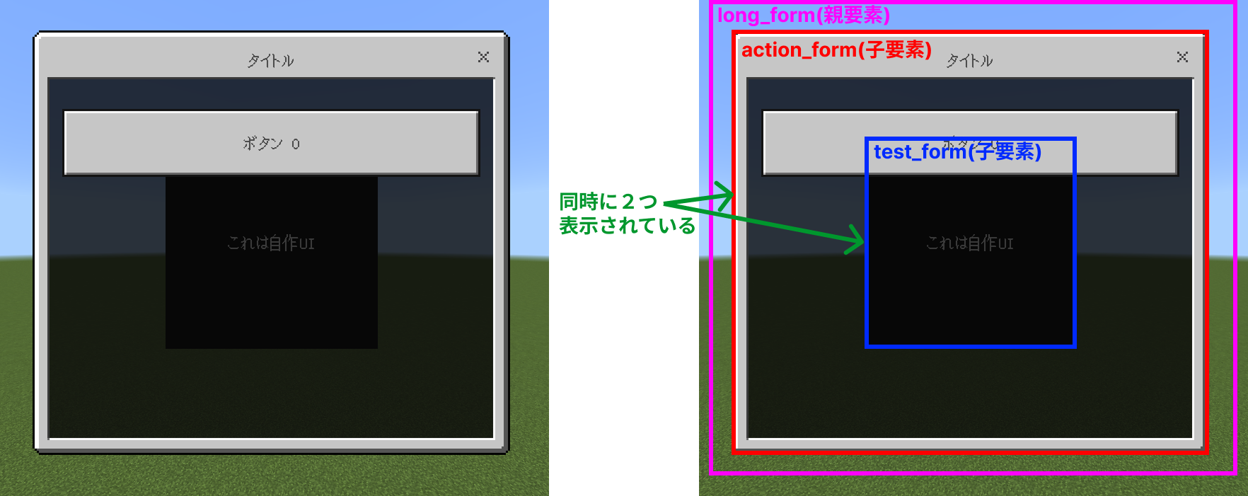 ※自作UIのほうにはボタンを読み取って表示する機能がないので、ボタンは出ません。