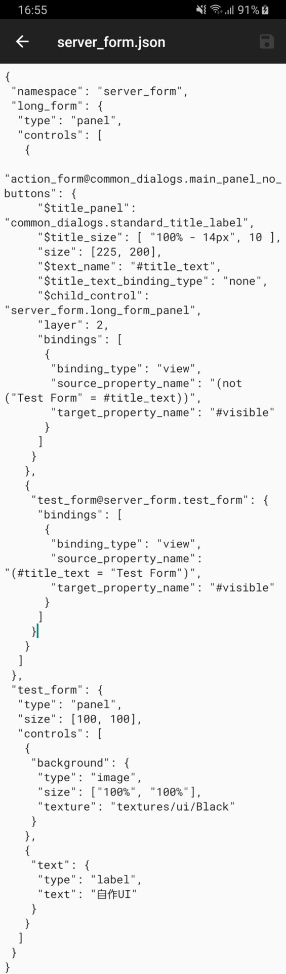 アクションフォームやモーダルフォームは resource_pack/ui/server_form.json に定義されています。