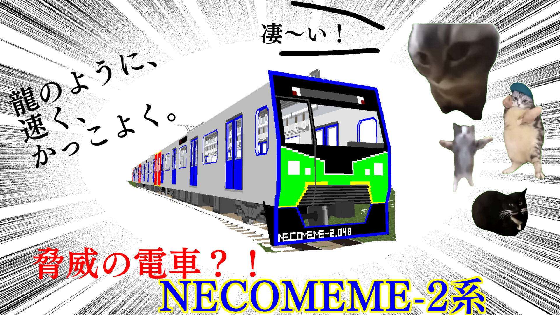 皆さんこんにちは♪猫ミーム先生です!今日はこのかっこいい電車NECOMEME-2系を配布!なんと、龍をモチーフにした前面デザイン。かっこいいですよね〜。
