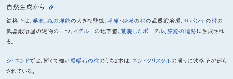 %%ネザーの荒廃したポータルでは鎖の代わりに鎖が使われているので、ネザーの荒廃したポータルに鉄格子は生成されないわね。
