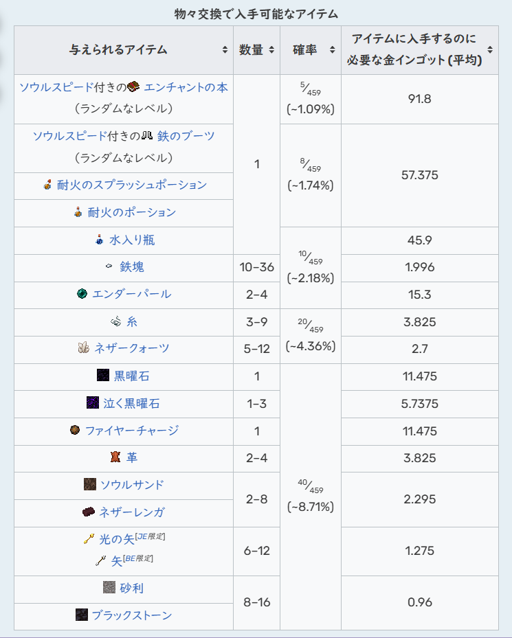 %%問題の中に、「ピグリン交易で入手できるアイテムは?」とありますが、Java版だけかもしれませんが、グロウストーンパウダーはピグリン交易で入手できます。%%
