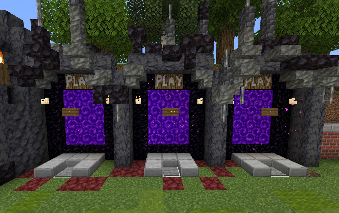 ガチャを引いたら、試合にいきましょう。初期スポーン前方にあるポータル近くの感圧板を踏むことで、プレイヤー全員が試合にいきます。試合ではガチャでゲットしたキャラクターのアイテムをもってしゃがむと、キャラクターを召喚できます。