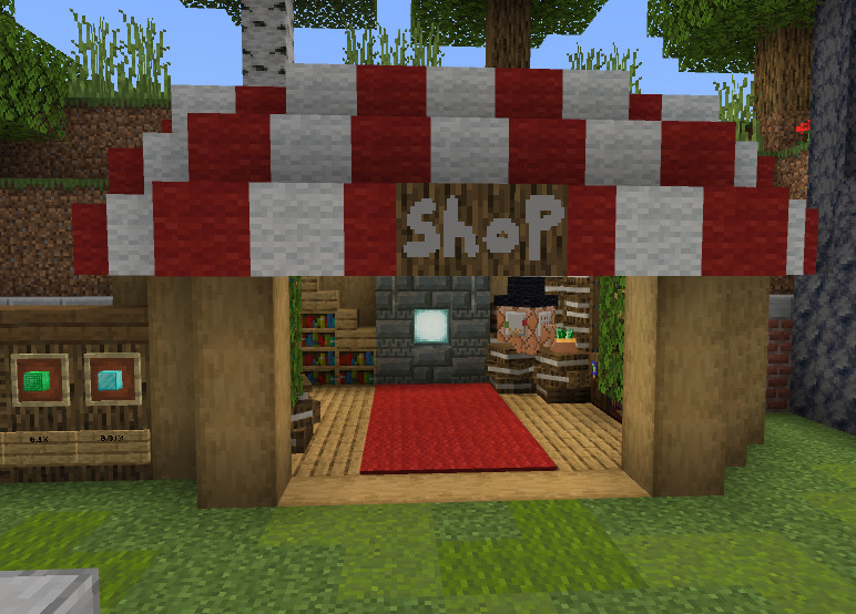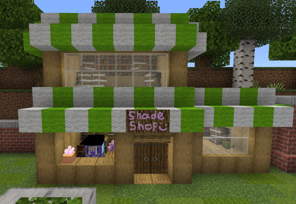 初期スポーン右にある緑と白の屋根の建物です。シャードショップにいるコマンドブロックに話しかけることで、シャードと鍵を交換できます。鍵はクレートエリアでガチャをするのに使います。