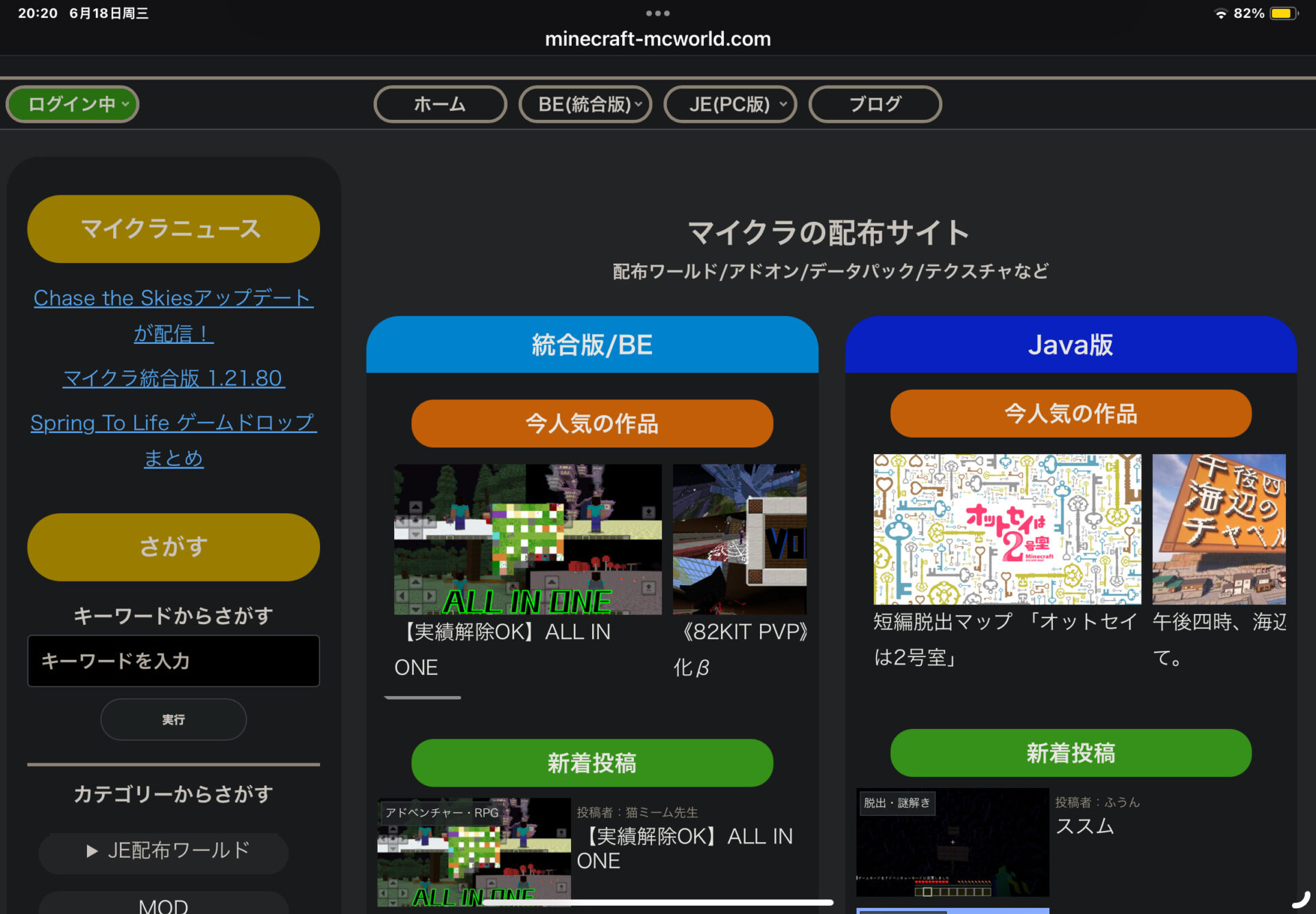- 青いボタンは最新版のワールドの配布、水色のボタンはリニューアル前の旧版ワールドです。