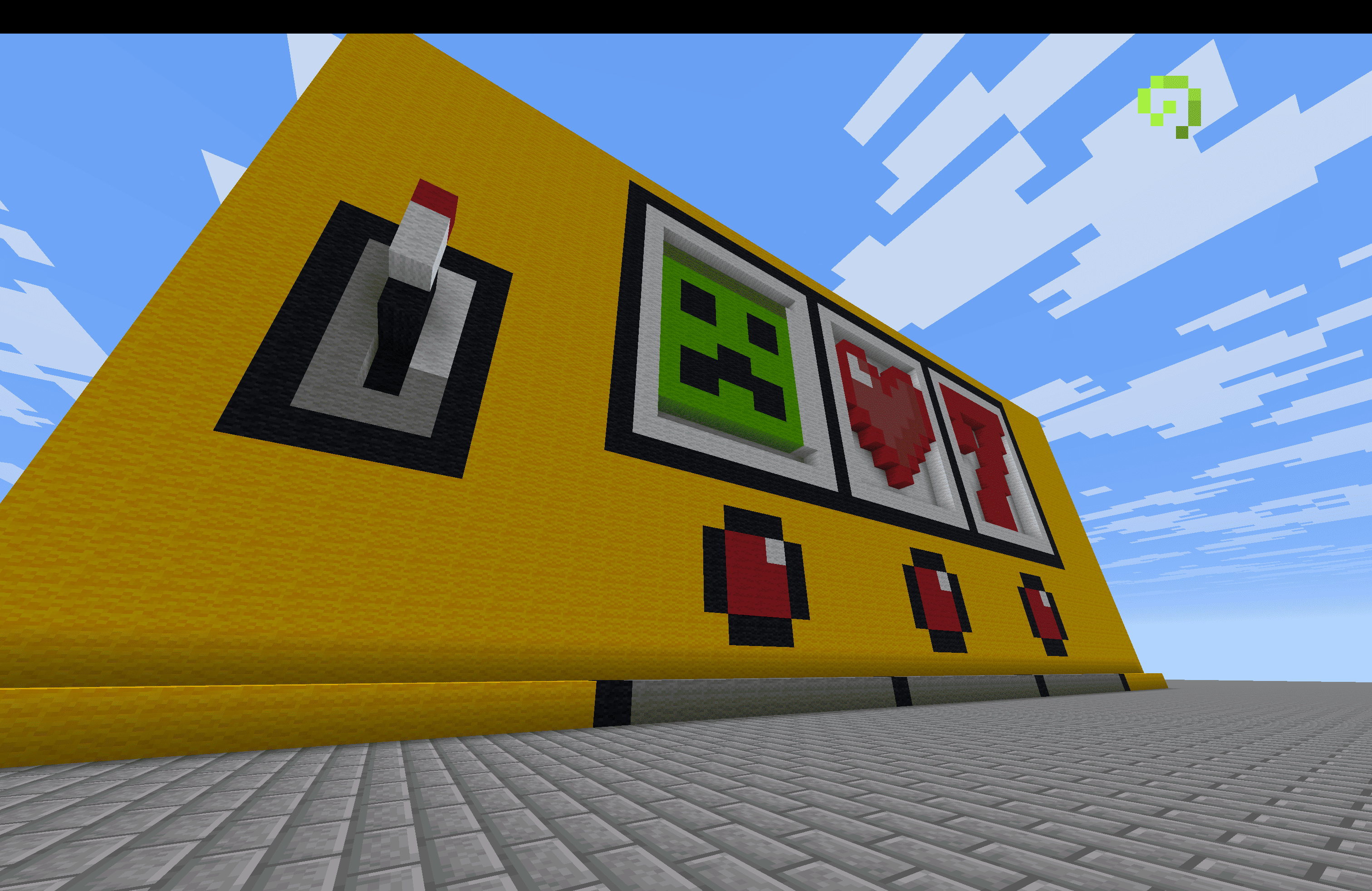 左上のHP(ハート)は、クリーパー、メテオ、ゾンビ、剣が出ると1減る