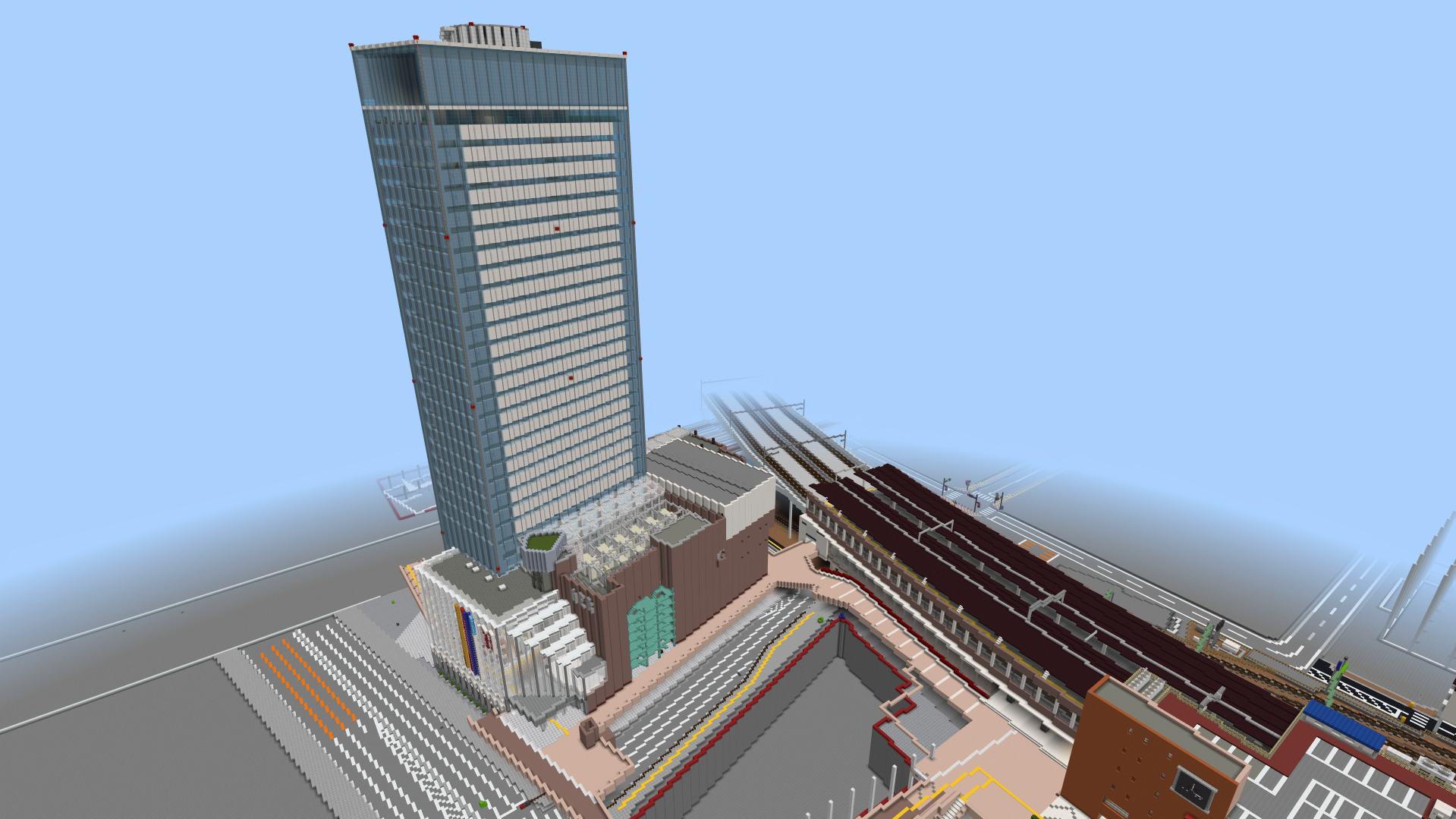 仙台駅周辺をマインクラフト(クリエイティブ)で再現しました。見慣れた西口から駅舎内の部屋割りや駅員通路をJRのホームページや東北新幹線の工事書籍をもとにできるだけ厳密に再現しました。