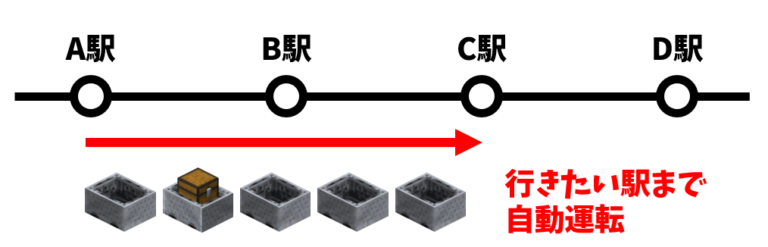 例えば、現在A駅にいたとします。C駅を行き先として指定した場合、B駅には停車せず、C駅まで一直線に自動運転します。