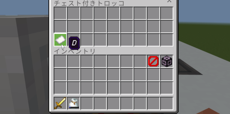 (ワールド内の「A駅」にチェストを設置しており、その中に、行き先カードが入ったバンドルを用意しています。それを取って、使って下さい。)