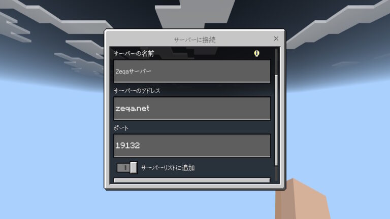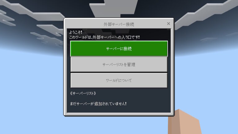このワールドは、ワールドからZeqaサーバーなどの、特集サーバー以外のサーバーに接続できるワールドです!