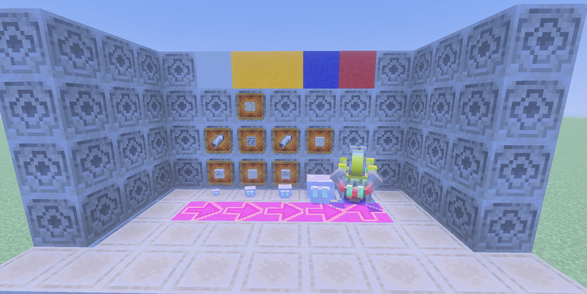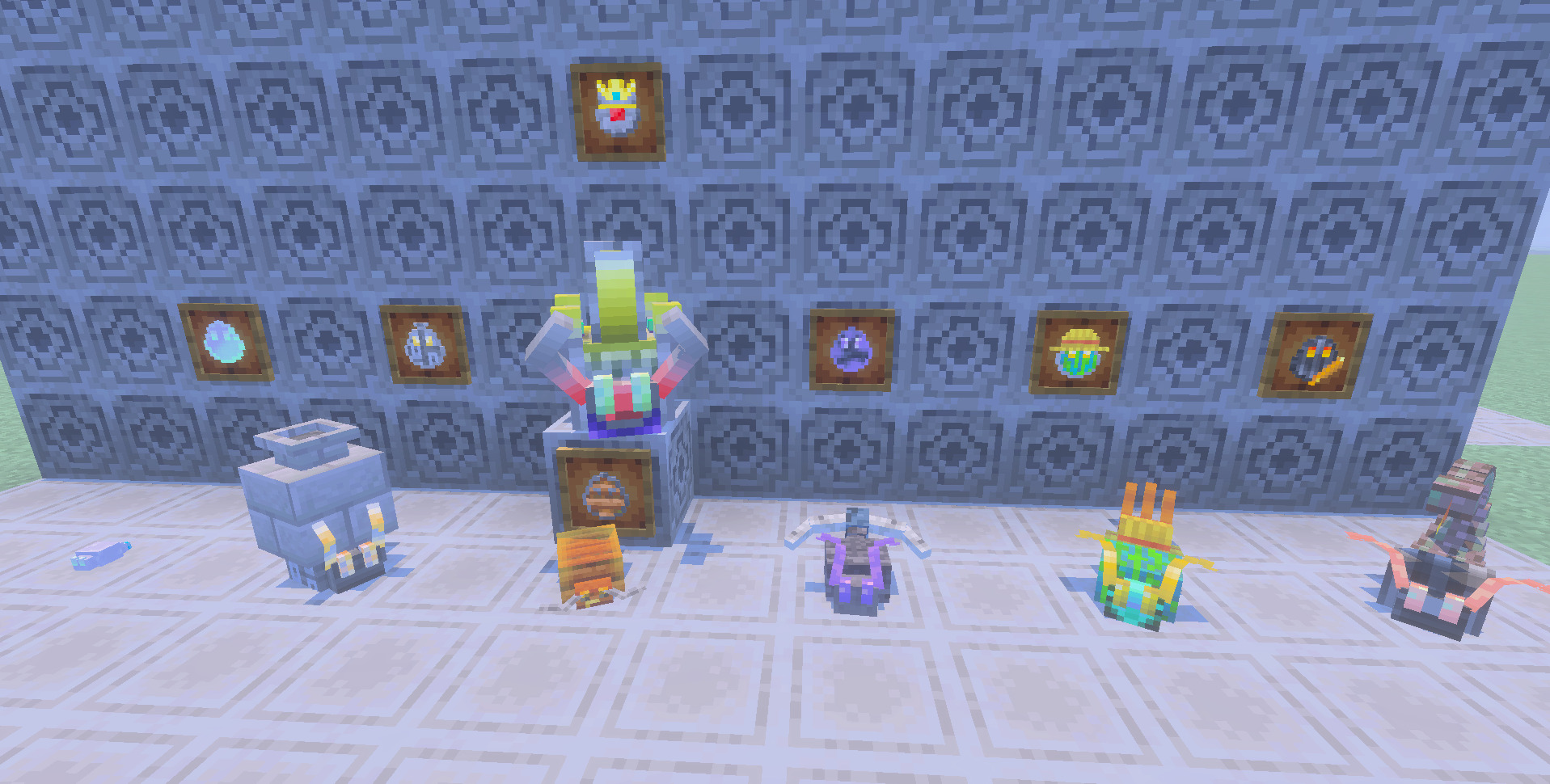 ニードルシルバーフィッシュ:石の剣で進化。追従状態はデフォルトでプレイヤーが攻撃された時のみ防衛します。モード変更(石桑模様の石板)でプレイヤーが攻撃した相手を攻撃するようになります。また、追従モード(リード模様の石板)ではプレイヤーを追従せずに、近くのロードストーンの周りを徘徊し、10ブロック圏内の敵を自動攻撃します。ブーストの石板(☆模様)による効果は自身の攻撃力を120秒間向上させ、ダメージの軽減を行います。クールダウンは5分間で、スタッフの耐久地をそこそこ減らします。10体いればウォーデンとも張り合えます。