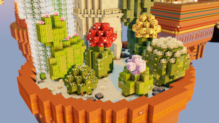 各バイオームをテーマとして彩られた植木鉢が50鉢浮かんでいる世界です