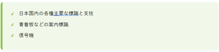 まずは本アドオンの要、標識系ブロックの紹介です。一言で「標識」といっても、その種類は多岐にわたります。免許を持ったことのある方ならご存じかもしれませんね。