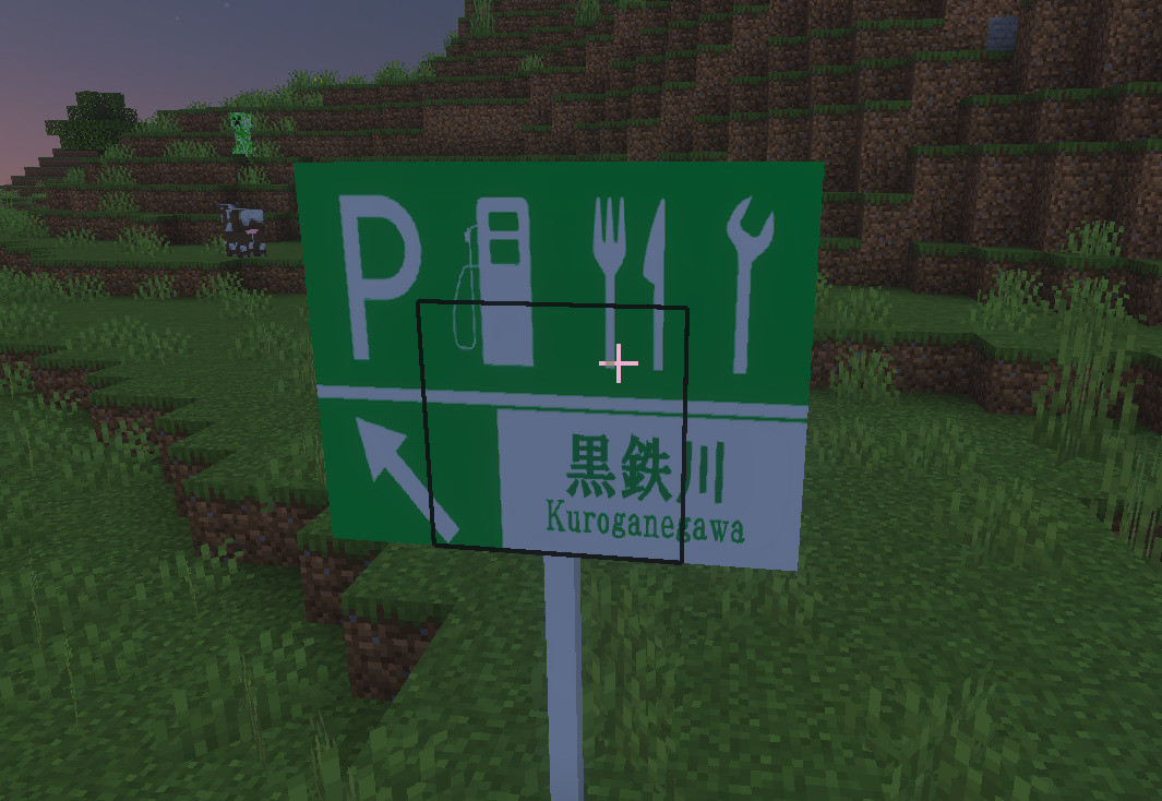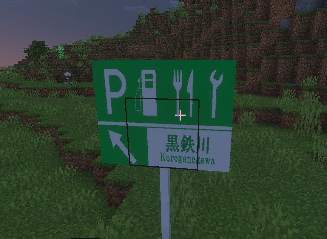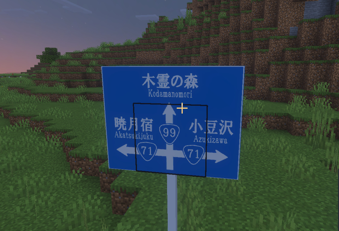 そこで、そうした現代建築のニーズに応えるべく、私は「標識アドオン」を作成しました。その名の通り、日本国内に存在する主要な種類の標識を追加し、以て現代建築を手助けするアドオンです。以下では、追加されるブロックを解説していきます。(レシピはないので、専らクリエイティブでの使用を想定します)