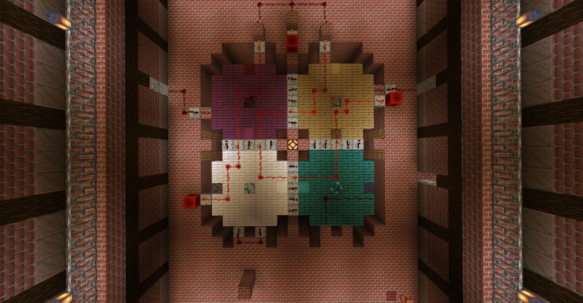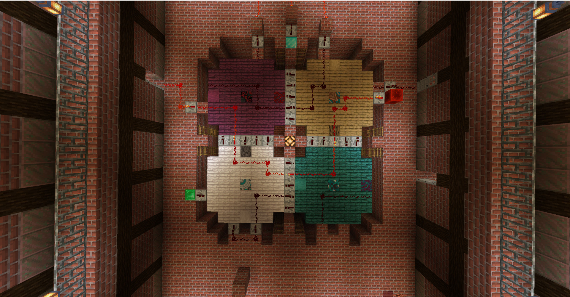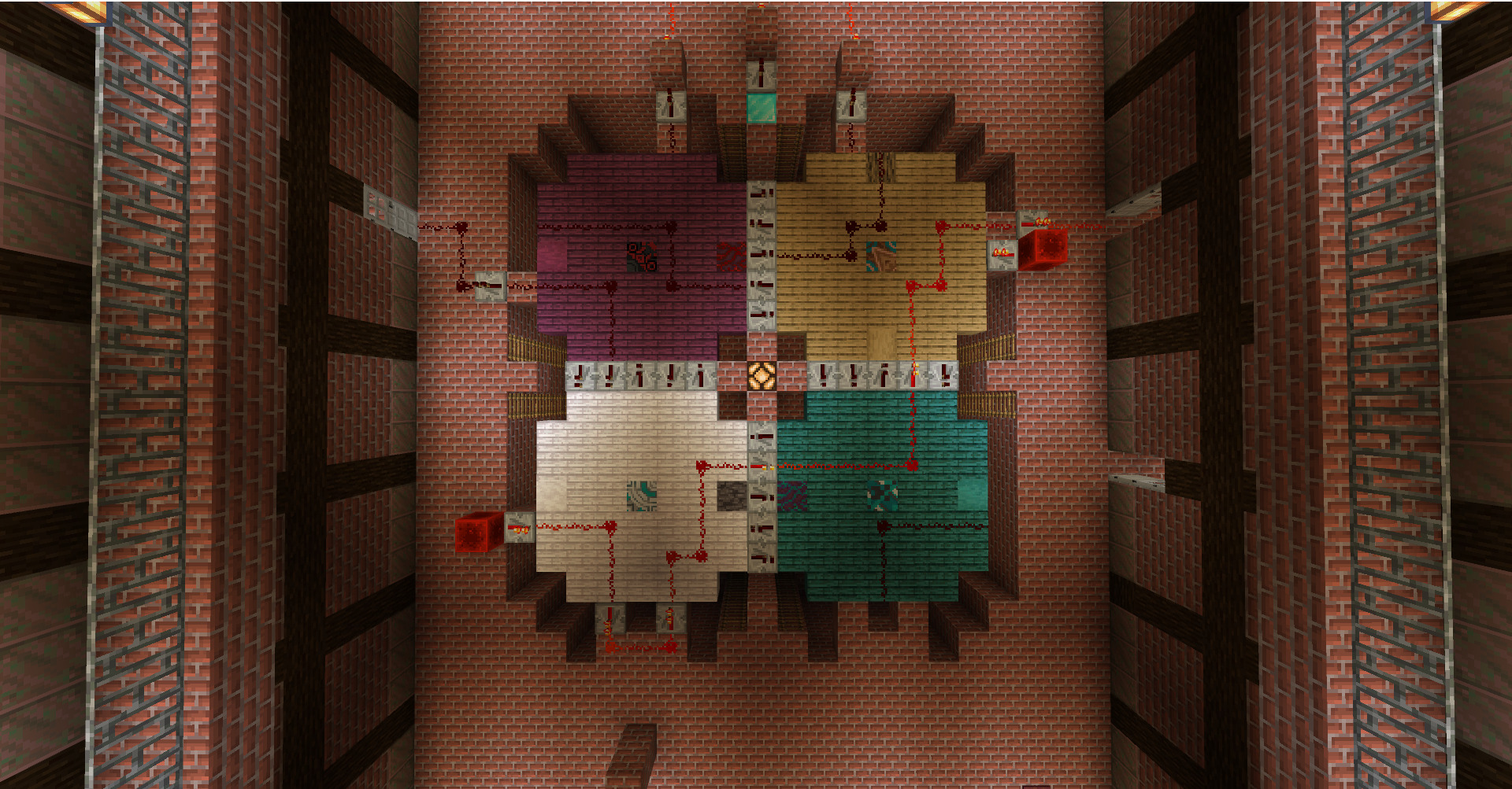 最後の扉を開けるためには、3つのレッドストーンブロックを集め、回路に接続する必要があります。最初は右の部屋から、”金ブロックに設置できるレッドストーンブロック”を獲得し、進めましょう。