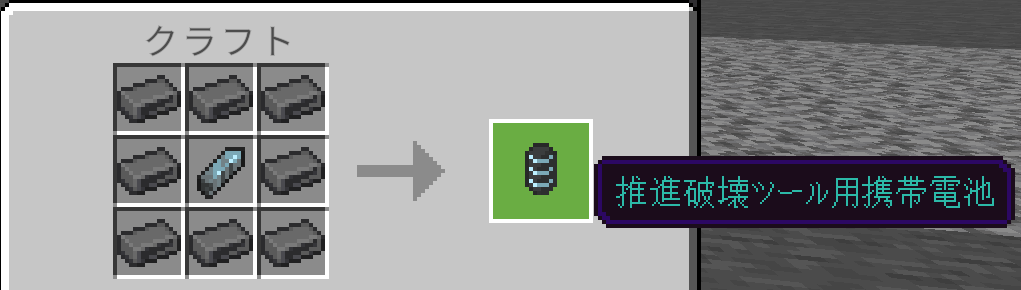 バッテリーは電池をオフハンドに持ち、メインハンドにツールをもって右クリックすると充電されます。(携帯電池は25万、空気電池は5000回復します)