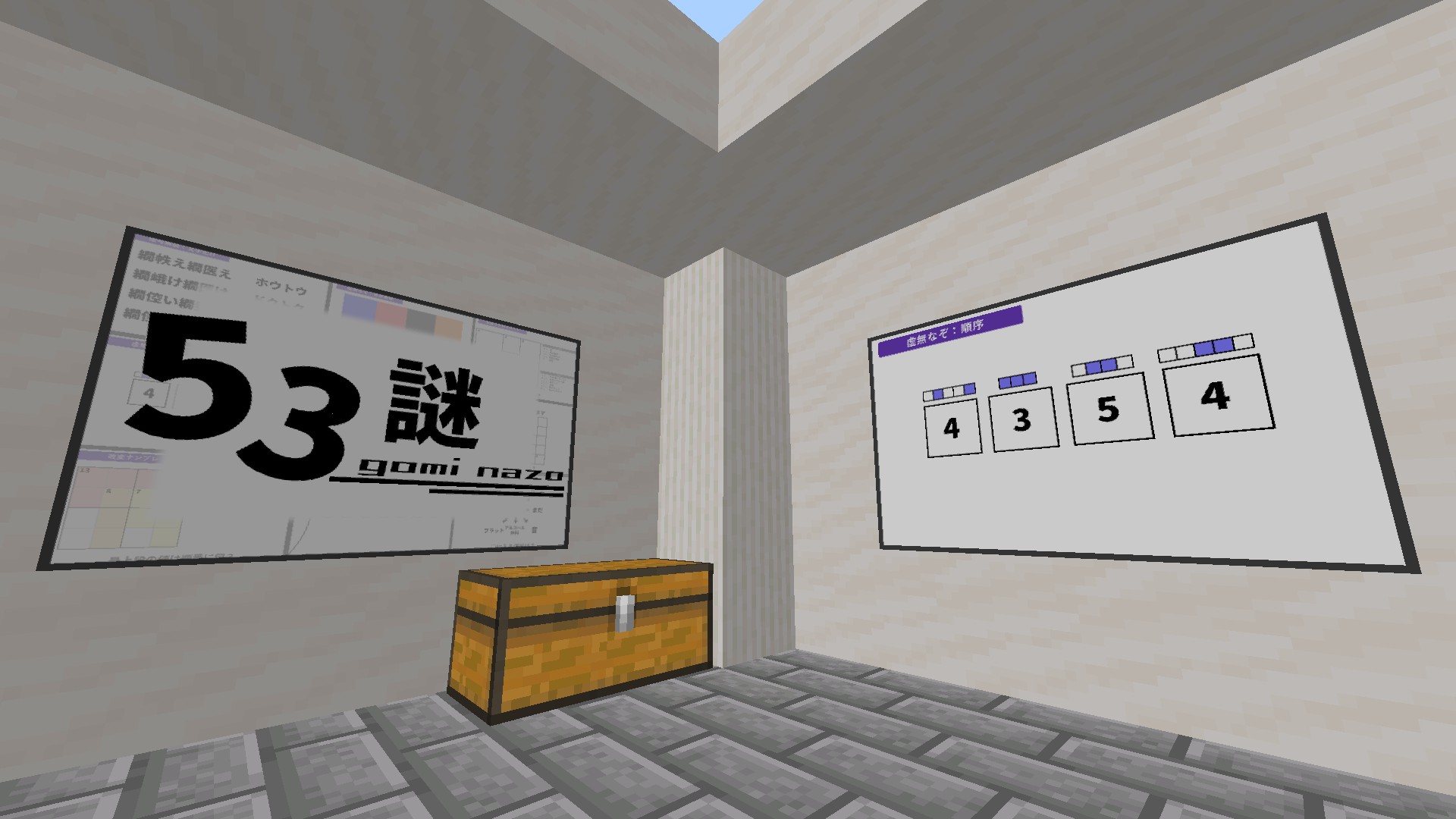 • 謎解きが53種類あること以外に何もないワールドです。マイクラらしさなどは一切ありません。ご了承ください。