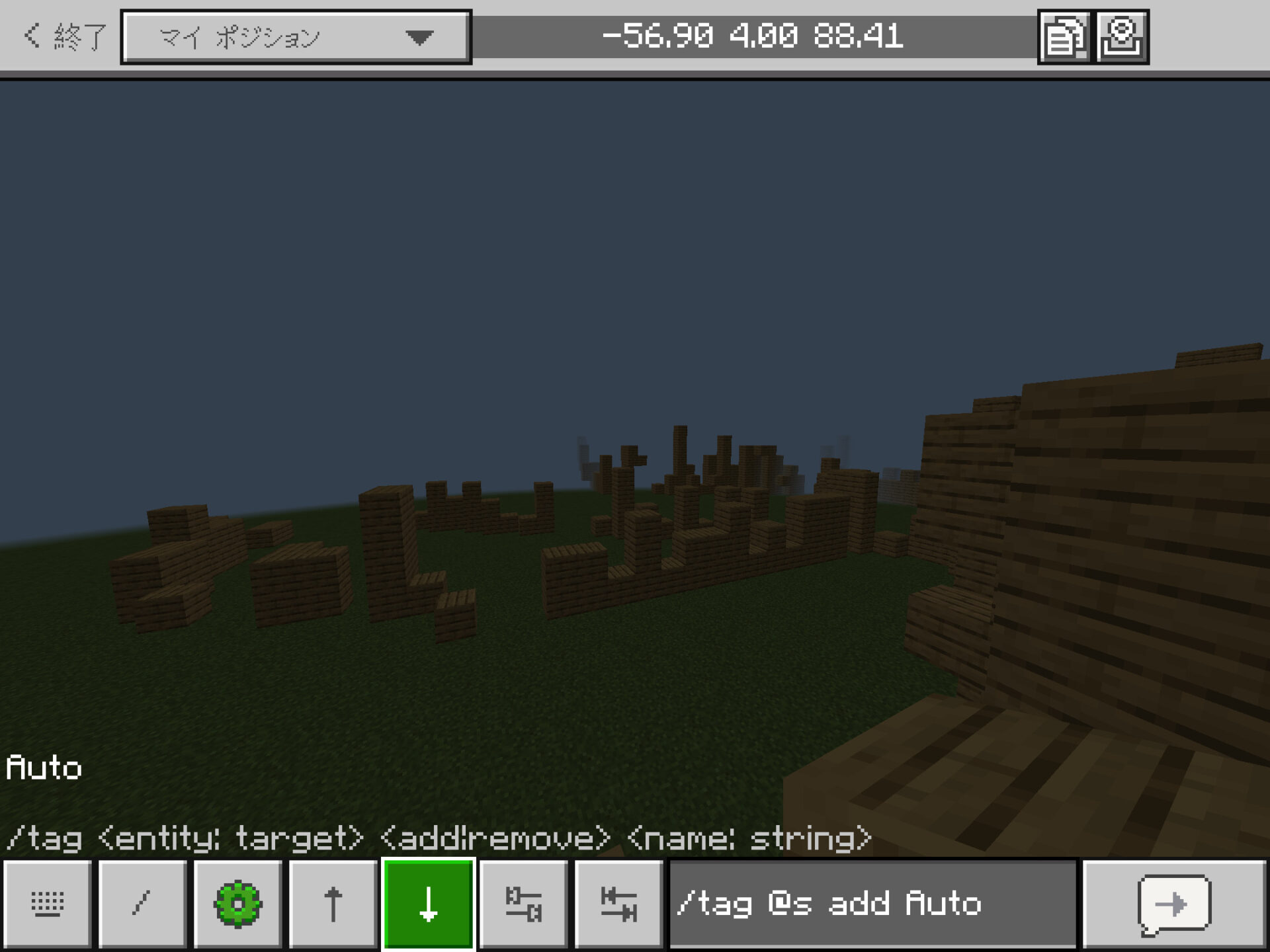 “Auto”というタグをつけることでブロックを一秒間に20個置くことができるようになります。
