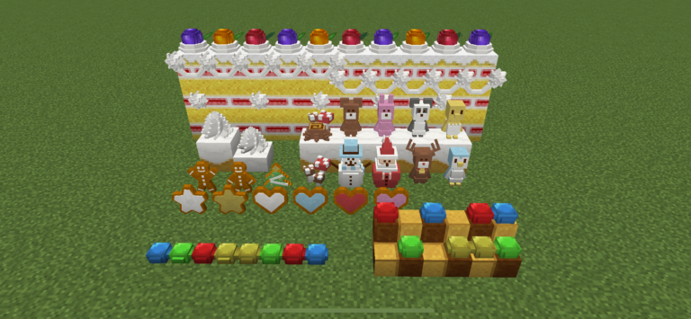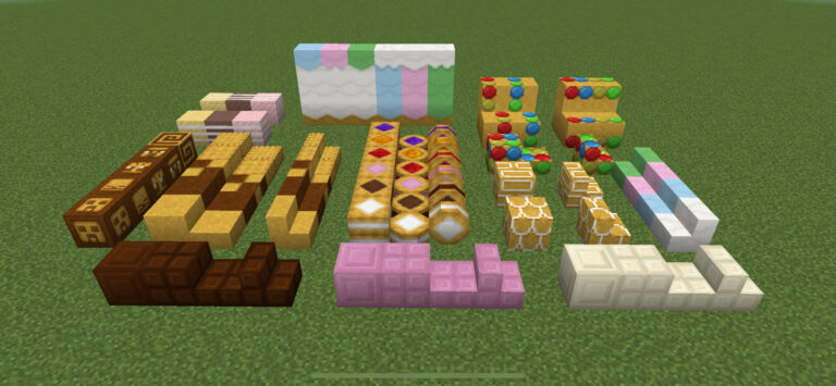 - 一度建築/デコレーションブロックにしたものは食べられません。作ってる最中にうっかり(誤操作で)食べてたらいつまでもお菓子の家は完成しないですからね(笑)