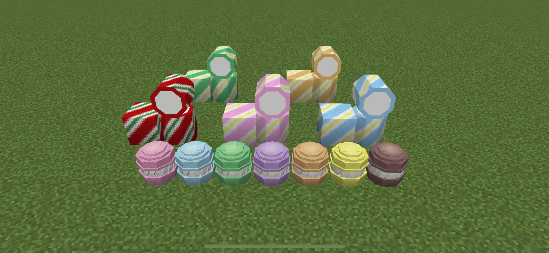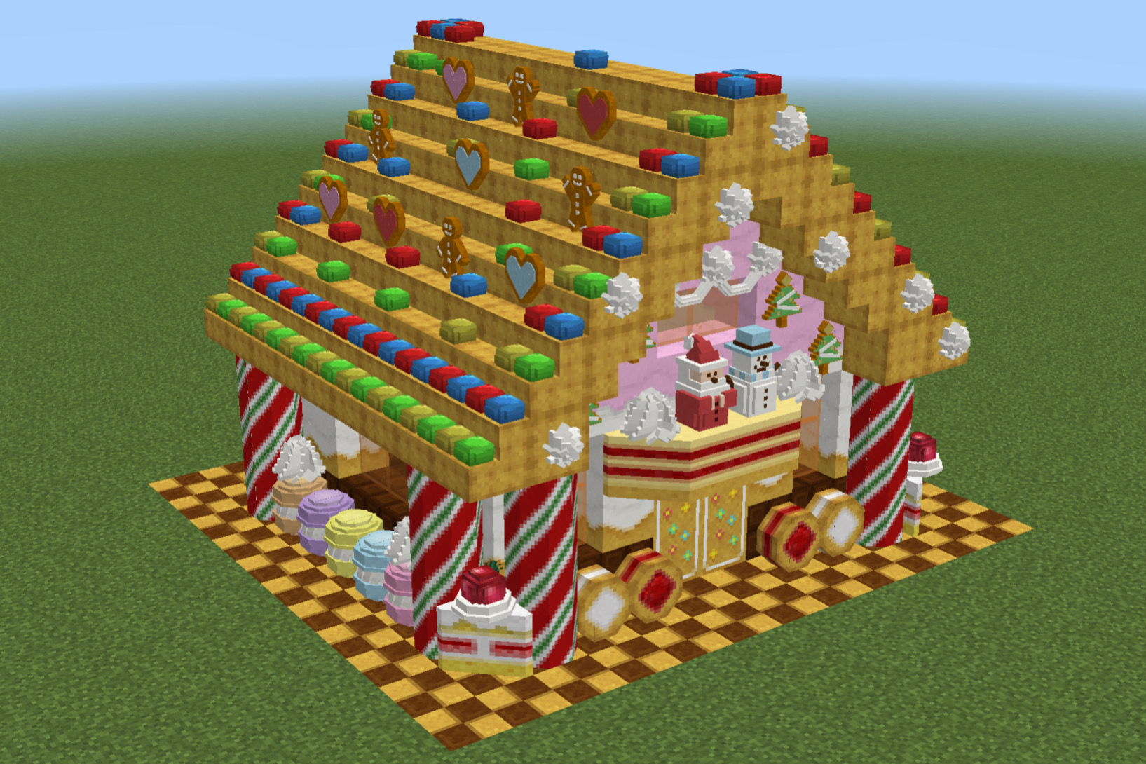 - 一度建築/デコレーションブロックにしたものは食べられません。作ってる最中にうっかり(誤操作で)食べてたらいつまでもお菓子の家は完成しないですからね(笑)
