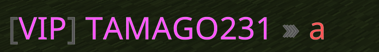 名前自体の色を変更できます。私の場合だとTAMAGO231のみ色が変更されます。こちらも同様に§が使えないため、$に置き換えて設定してください。$bにするとこのようになります。