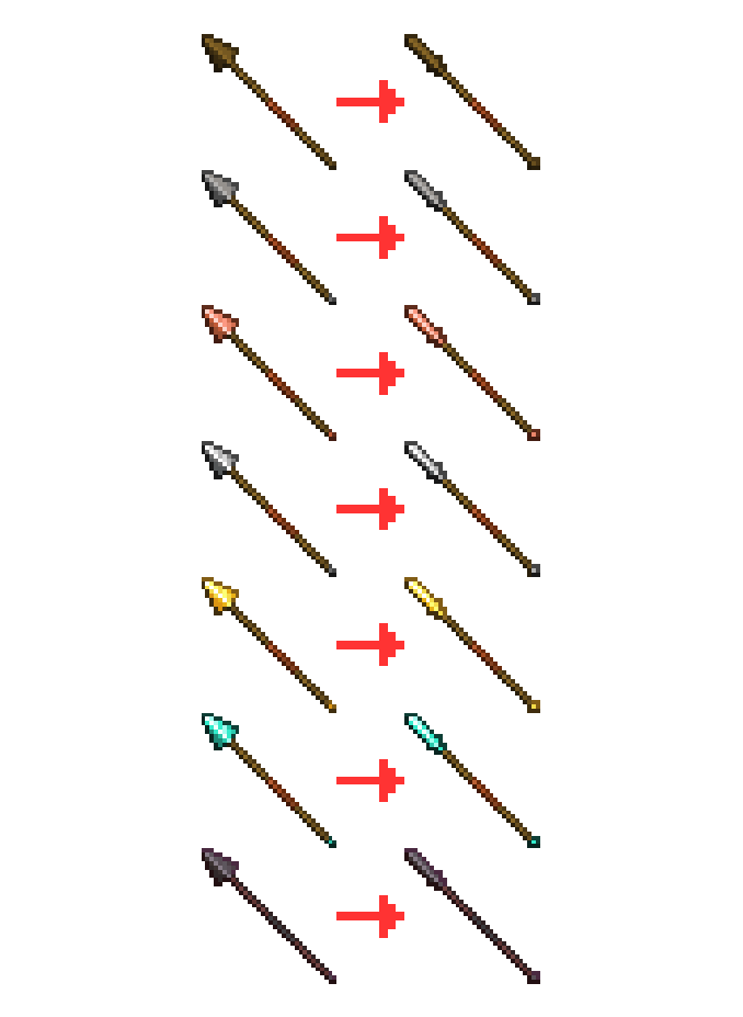 このリソースパックでは以下の槍の形状をより細く鋭いものに変更します。
