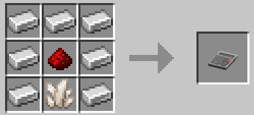 電卓は、「鉄インゴットx7」、「レッドストーン」、「ネザークォーツ」よりクラフトできます。