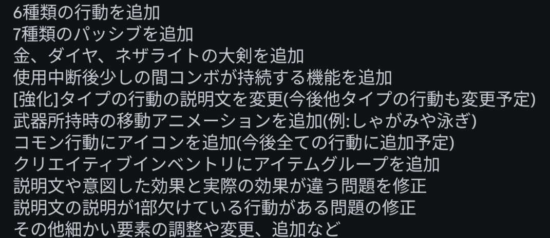 • V1.1…軽微なバグの修正、一部の行動に斬撃エフェクトを追加、パッシブを5種追加