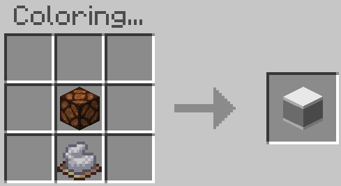 まずは着色台を適当なところに置いて開きましょう。こいつは作業台ブロックです。ここにレッドストーンランプと染料を1個ずつ配置します。不定形レシピなので、配置はどこでもOK。アップデート前から変わらない仕様です。そしてレッドストーンランプを使うということは……そうです、お察しの通り、こいつら光ります。