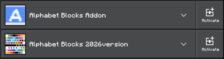 まず前述の通り、これは2023年配布のAlphabet Blocksのアップデート版という位置付けになります。アドオンパック自体は0から再構築しているので競合しませんが、ブロックのIDは旧版にあったものはすべて共通ですので、新しくインストールするAlpbabet Blocks 2026versionと入れ替える形で導入してください。まあ旧版の配布はここで行っていないので、多分持っている人はいないと思いますが。