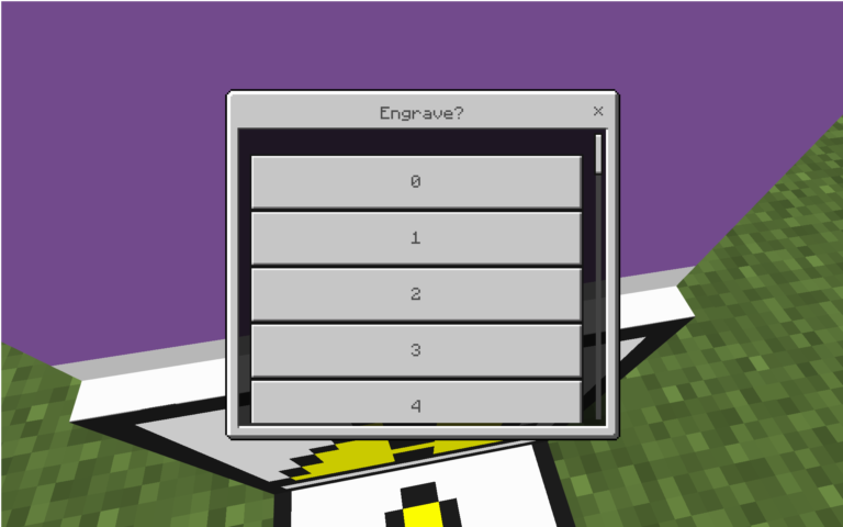 刻印台の上に載って、彫刻刀を持って右クリック。スマホ版だと長押しとかなのかな? 他のアイテムを使うときと同じ操作です。するとこんなUIが出てくるので、刻印したい文字を選びます。今見えているのは0~4までですが、スクロールすると他の数字とかアルファベットも出てきます。