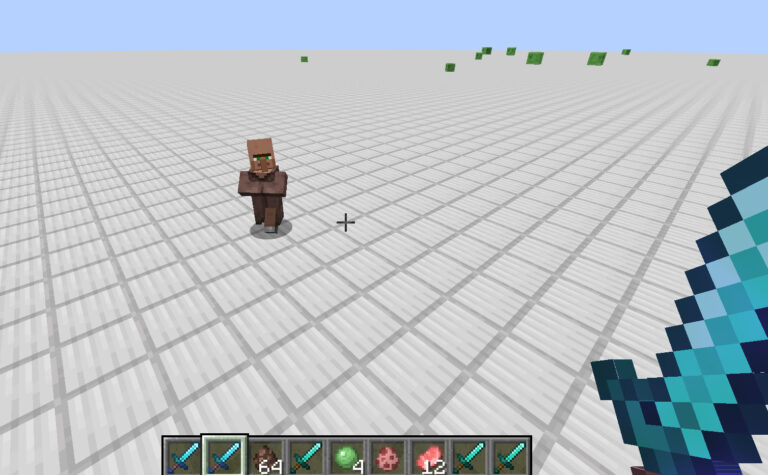 カリスマが付いた剣を持っていると、範囲16ブロック以内の村人が自動でプレイヤーについてくるようになります。