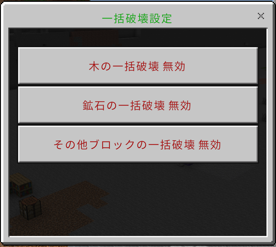 テレポーターと同じく許可を取るのが面倒だなと思ったのと、エンチャント追加アドオンの一括破壊が重いなと感じたのでより軽量に作る事を目的として制作しました。
