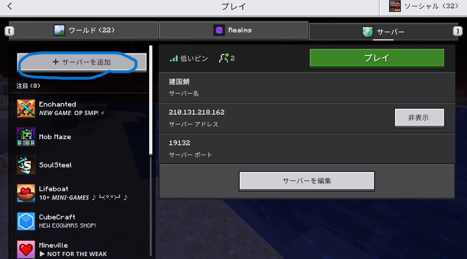 どうやってサーバーに参加するんですか。サーバーを追加のとこをおしてさんかするんですか