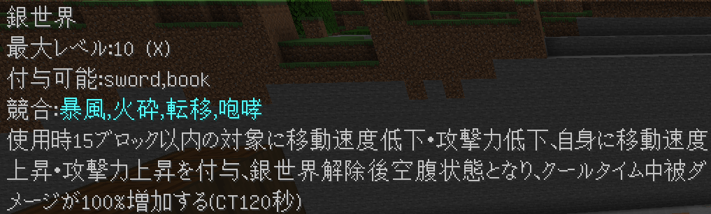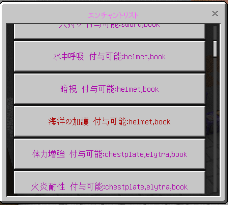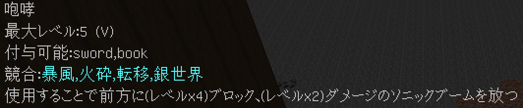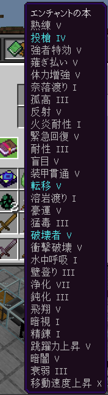 水色のエンチャントは右クリックで使用可能なエンチャントを表しています。