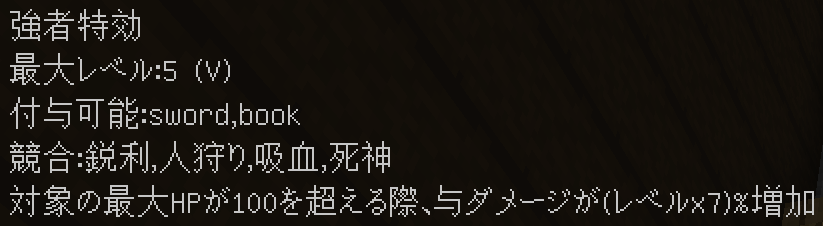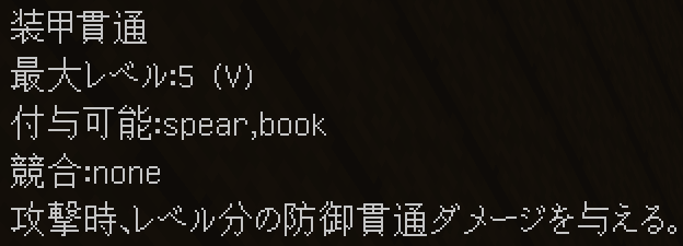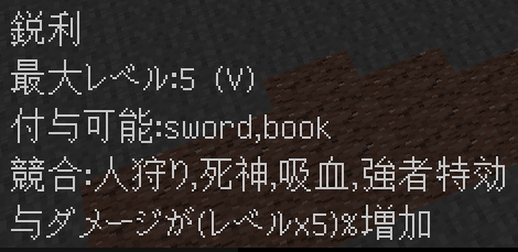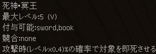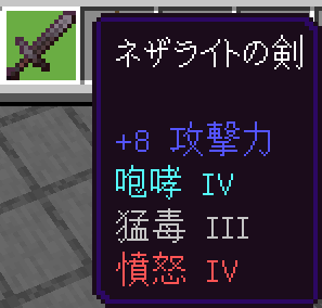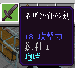 エンチャントを付与するとこのようになります。