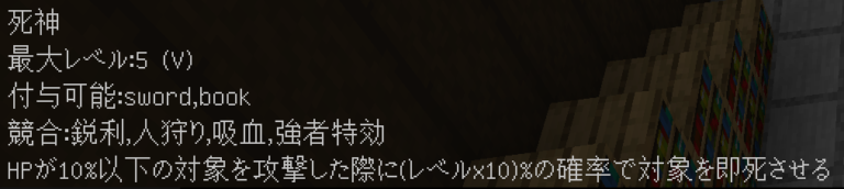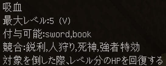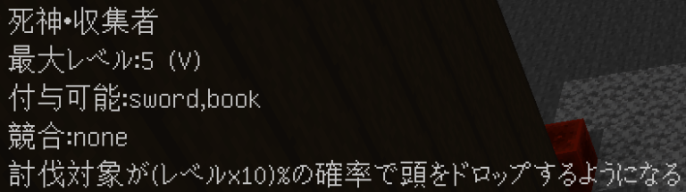 入手方法:死神が付与された武器で敵を倒した(エンチャントが発動した)場合に1%の確率で付与