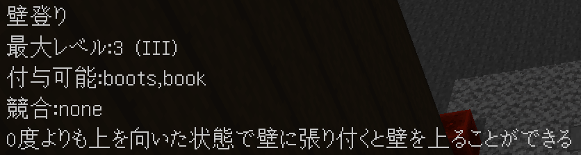付与可能エンチャントでは赤文字で表示されるエンチャントはポータブルエンチャンターで付与不可能になっています。