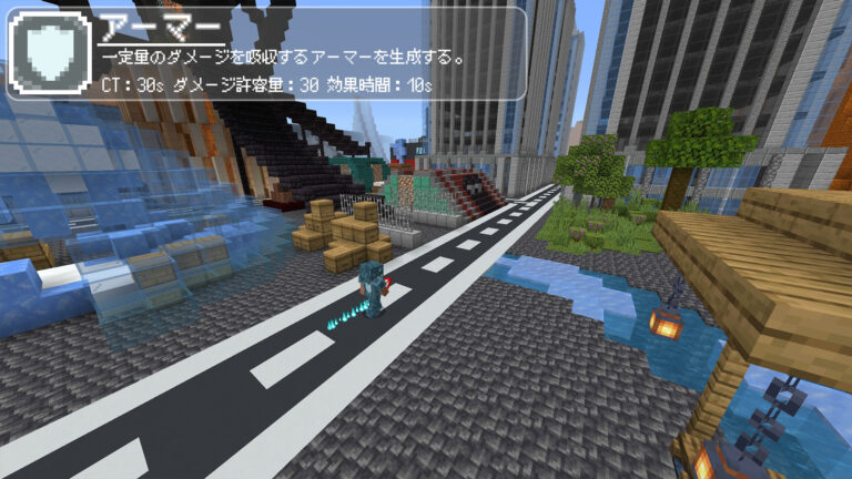 使用時、ダメージを吸収するアーマーを生成します。使用中に受けたダメージの合計が一定量を超えるとアーマーは消滅し、超過分のダメージを受けます。使用中は移動速度が低下します。