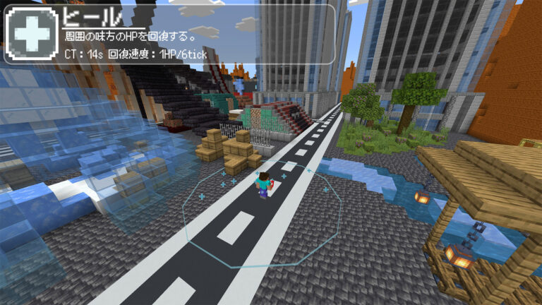 発動地点を中心に、周囲のプレイヤーを回復します。空中で使用した場合、空中での発動地点が中心となります。