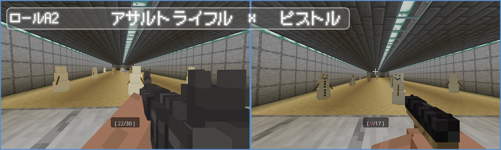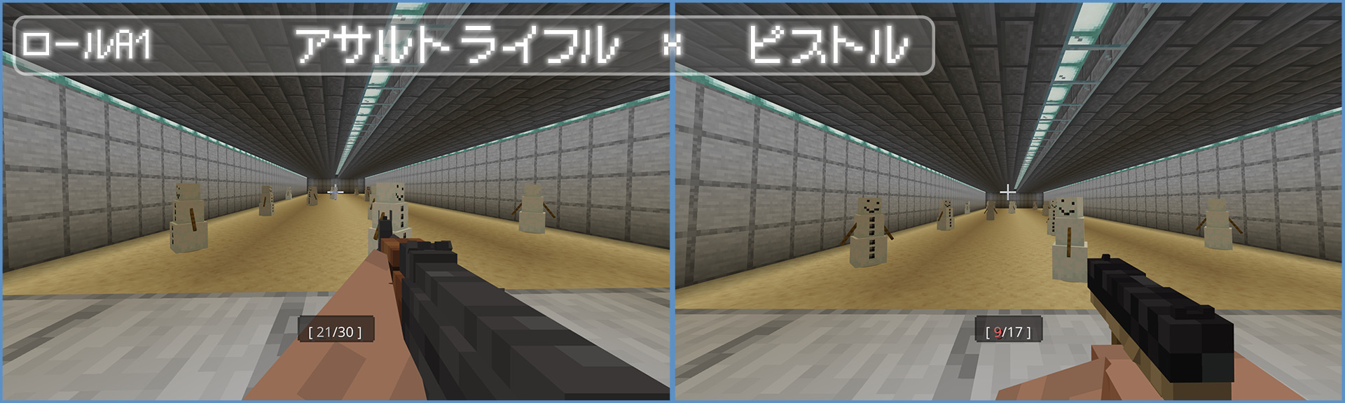 このワールドではGabriel Aplok様作成のAplok Gunsを使用しています。https://mcpedl.com/aplok-guns/