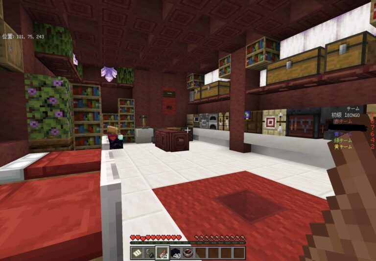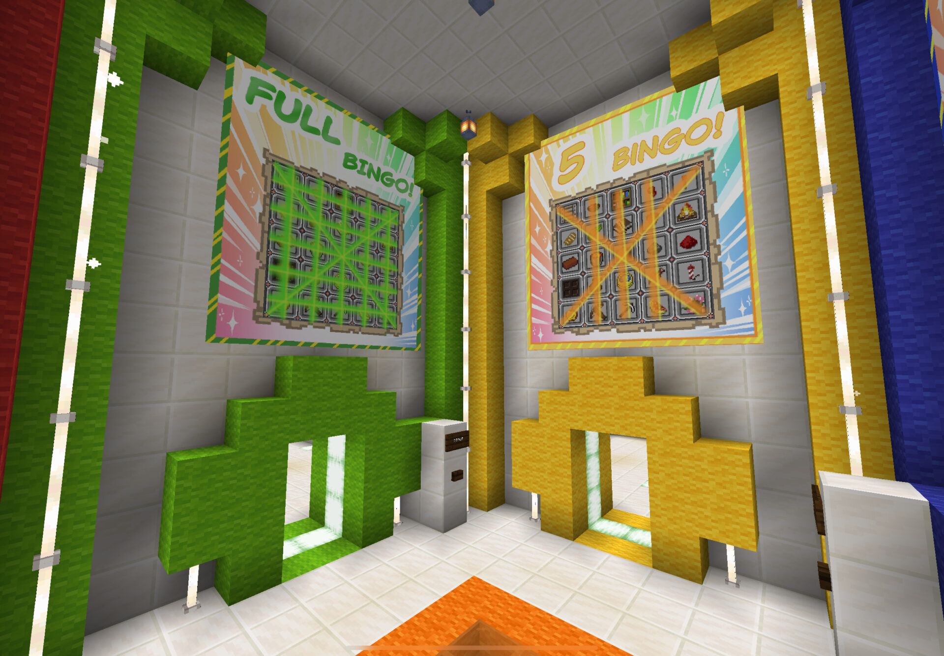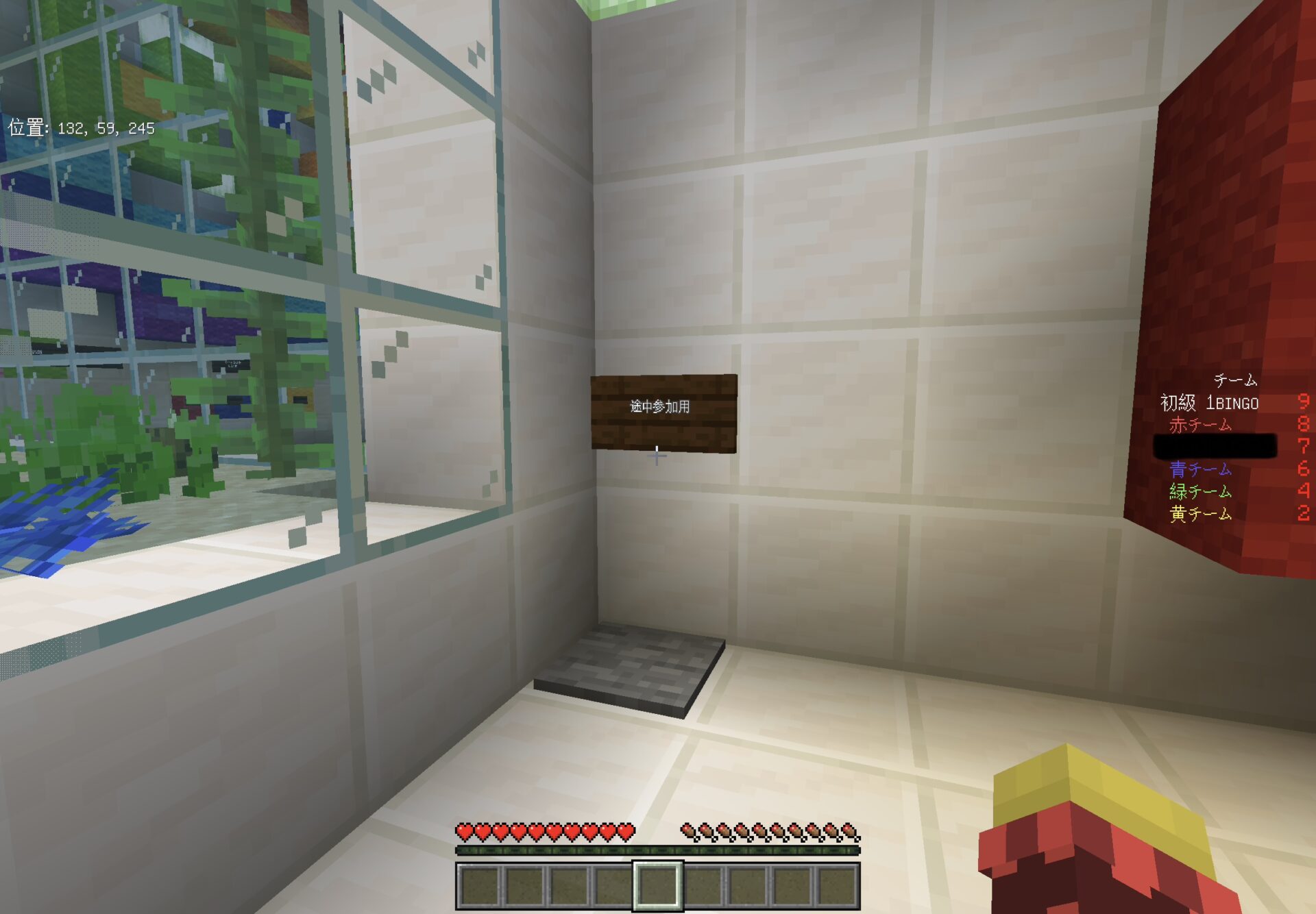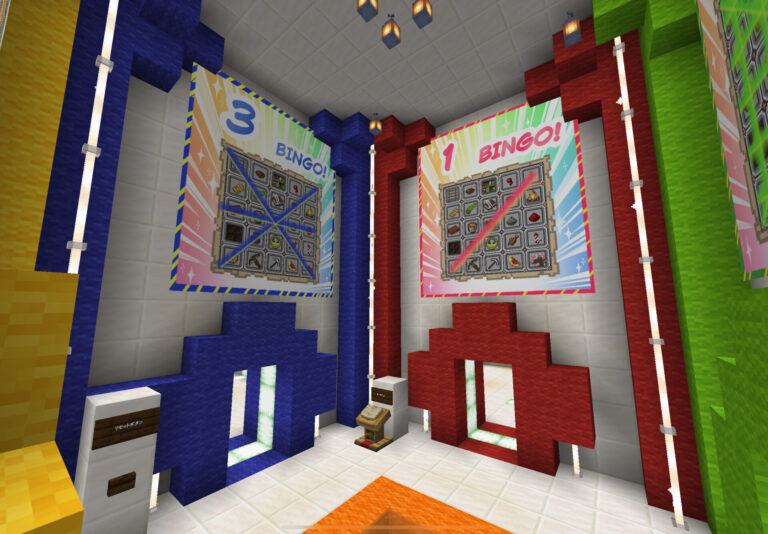 ゲーム開始後、ゲームに参加していない人がワールドに入ると、BINGOのチームカラーを決めた部屋にスポーンします。