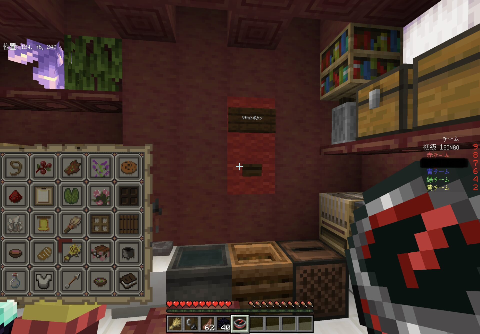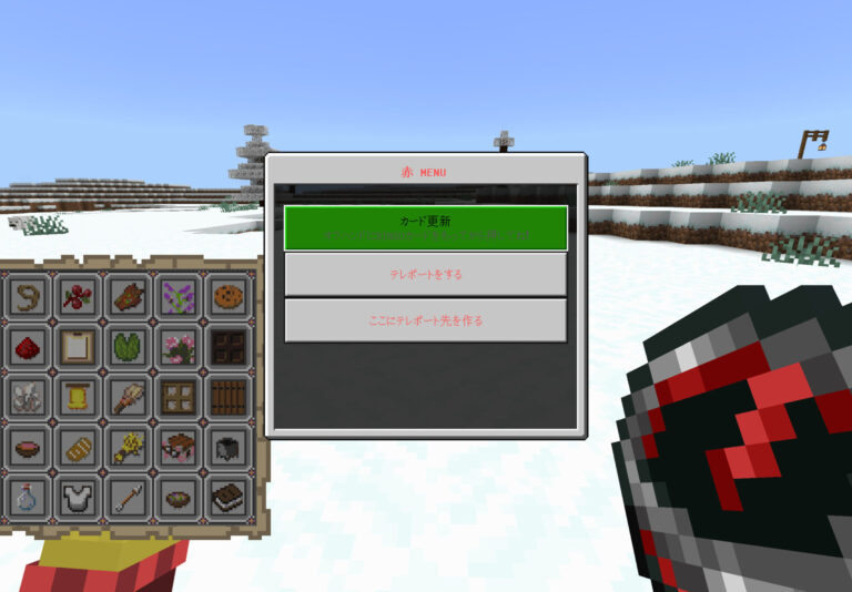 アイテムを取った後に、BINGOカードをオフハンドに持った状態で、更新をすると、一瞬別の場所にTPしますが、すぐに戻ってきます。(この時、ちょっと重くなる時があります。)