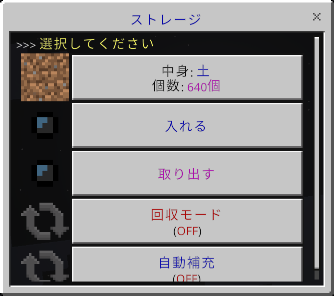 1つのストレージにつき、1種類のアイテムを大量に収納することができます。