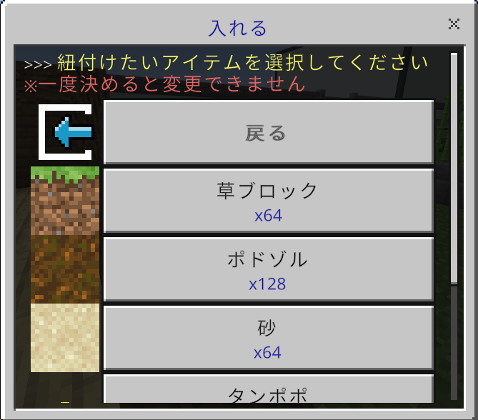 (例:丸石を入れた場合、以降は丸石専用のストレージとなります)