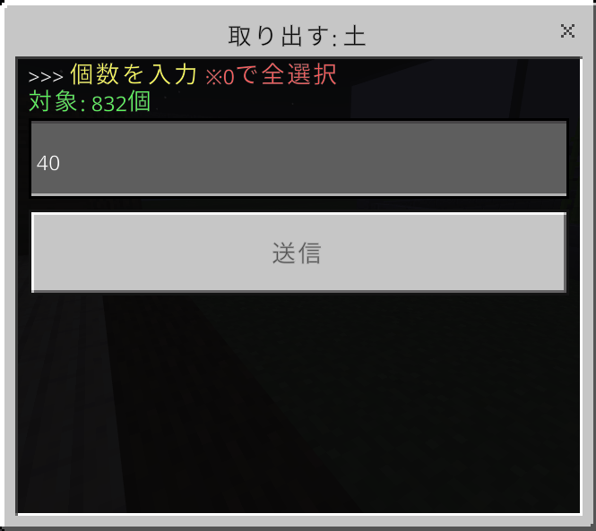 収納されているアイテムを「1スタック(通常64個)」取り出します。